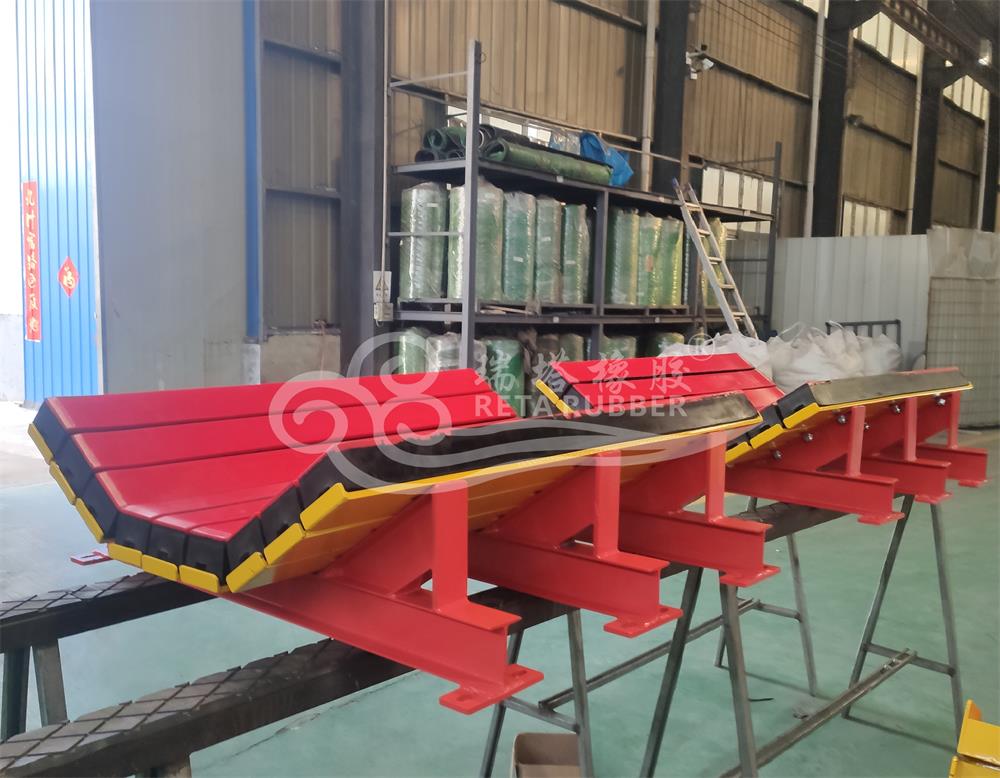 瑞塔橡膠輸送機落料點耐磨緩沖床發(fā)貨
